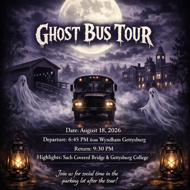 This 90-minute guided bus tour will pick up and drop off at the hotel. It is handicap accessible. You will stay comfortable on the bus for the entire tour. Learn about local civil war history and ghost stories as we travel to some of the most haunted sites in Gettysburg.